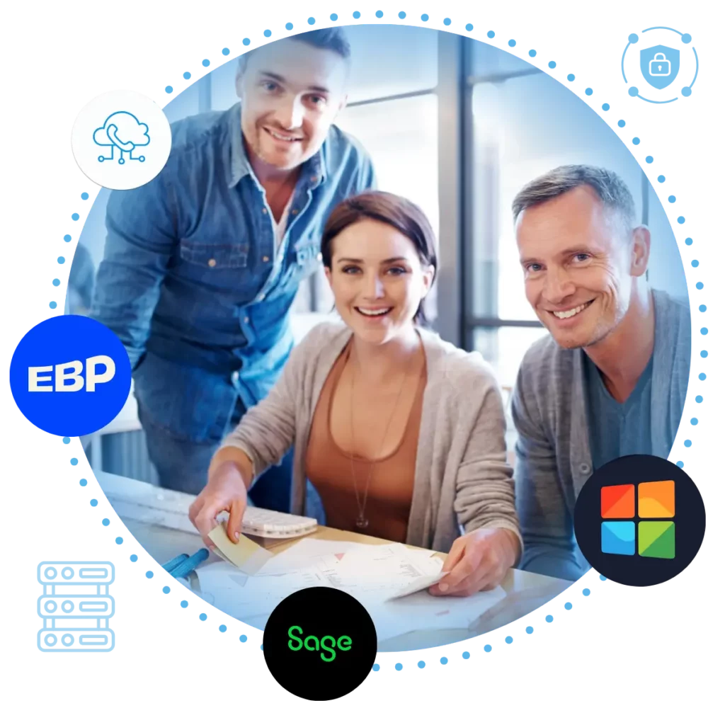 Nous réalisons un audit de vos besoins et vous conseillons sur les logiciels les plus pertinents pour votre métier. En tant qu’experts Sage 50, EBP et spécialistes en solutions de sauvegarde, sécurité et VoIP, nous savons que chaque entreprise a des besoins uniques. C’est pourquoi nous réalisons un audit précis de votre situation, afin de vous proposer des solutions personnalisées et évolutives. Quelle que soit la taille de votre entreprise, votre secteur d’activité ou votre problématique, nos experts vous accompagnerons dans votre transformation numérique.